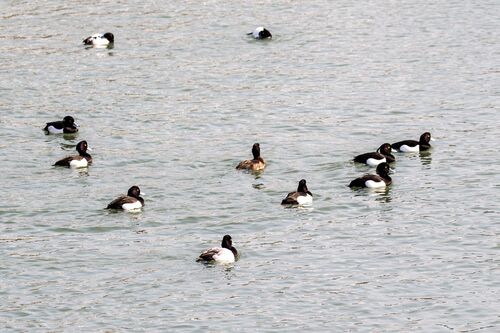 白と青みがかった黒のツートーンに黄色の目、キンクロハジロは絵になるカモだ。 でもこの日は、すっかり脇役だった。 1羽紛れ込んだ迷鳥のコスズガモのせいである。 コスズガモ迷入の偶発性についてはいうことはない。 それはそれとして、私のネタの価値と…