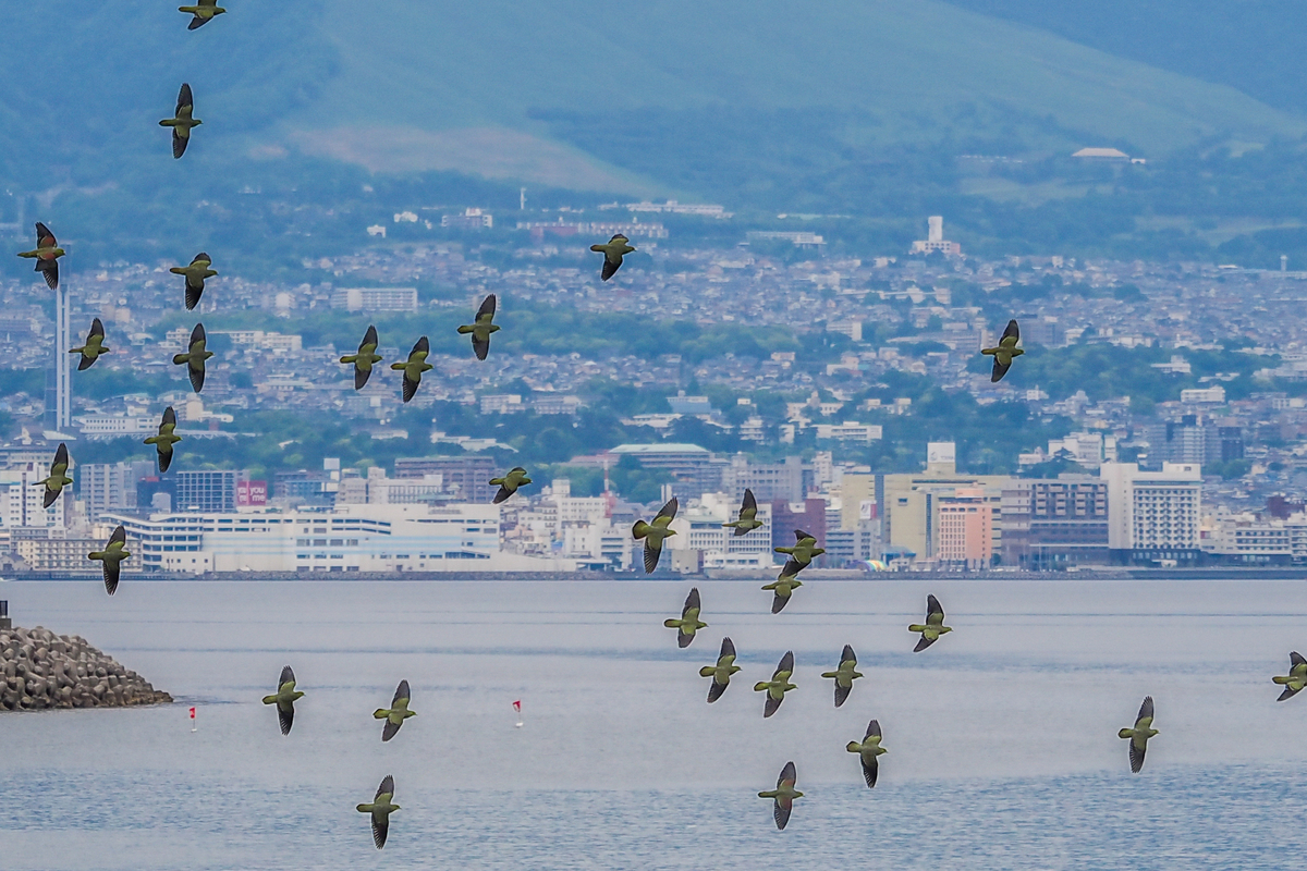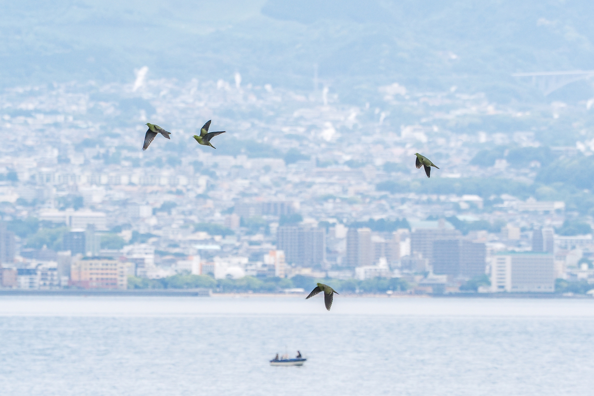 2022-05-22 アオバトと湯けむり 鳥頭苦肉 別府の町は海からの眺めも素晴らしい。 昔のローカルソングに泉都別府は東洋のナポリという歌詞があって、じゃああっちは西洋のBeppuかいと拗ねたものだ。 東京にいる娘の会社の後輩にAPUを出た韓国の元留学生がいて、別府の話になると夢のような所だったと懐かしんで涙ぐむいう。 湯けむりも人情も温かいのだ。