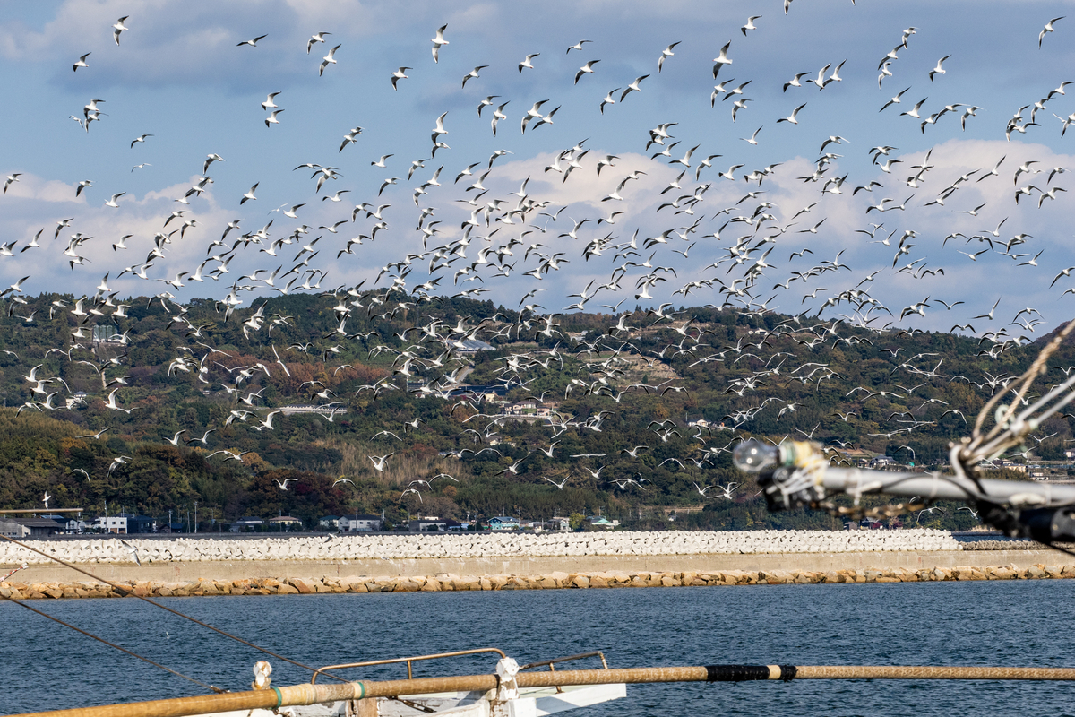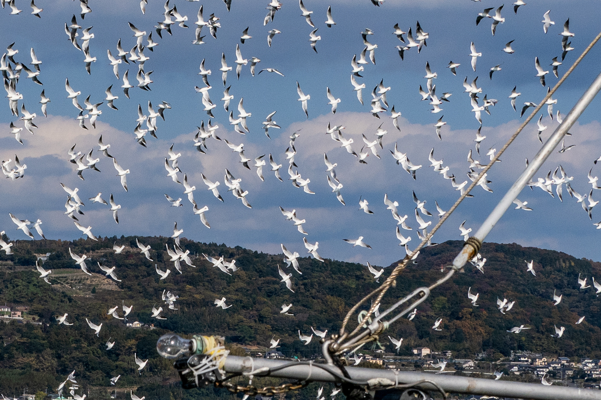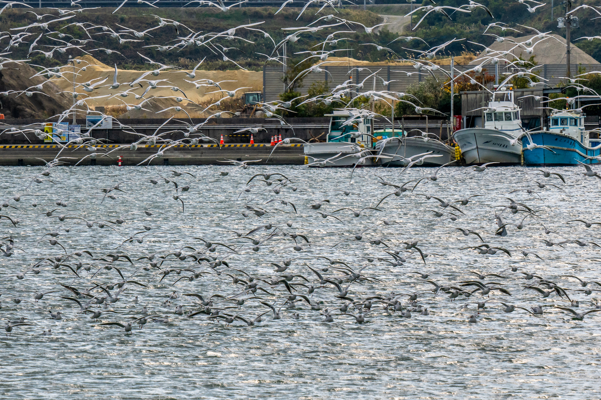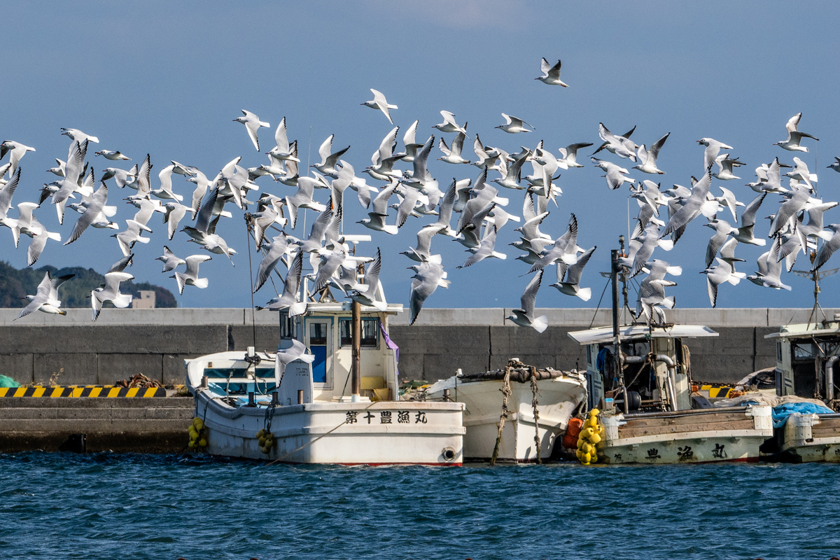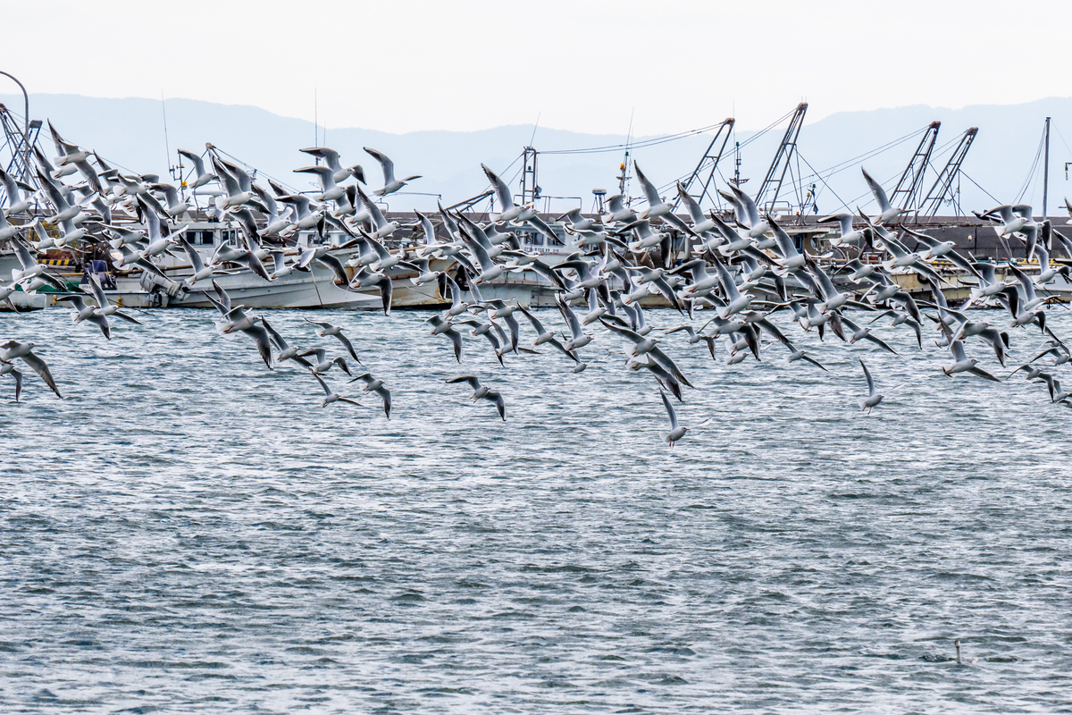 2024-12-16 休日の漁港 いきあたりばっ鳥 週末の漁港は平日とは趣が違う。 普段は帰ってくる漁船にアオサギやトンビが纏わりつく。 カモやセグロカモメもおこぼれを狙っている。 静かな日の港内はユリカモメの独壇場だ。 見物人がバーダー一人とは勿体無いが、それでも整然と行動する。 何か人間が困らせてることはないか。
