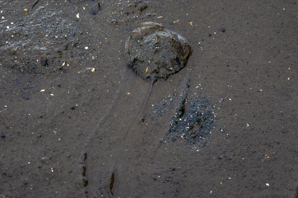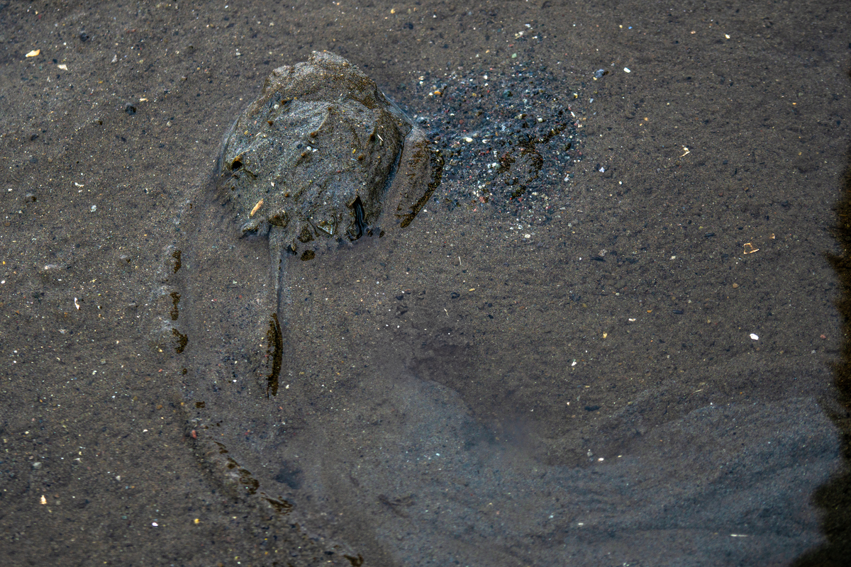 で、一天俄かに雨雲去り、涼風吹き渡るカブトガニ日和、娘はすぐに見つけてしまった。
