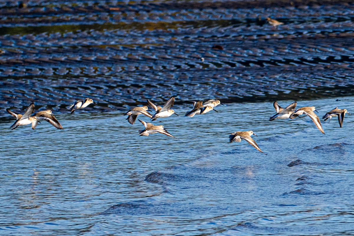 2025-11-24 地元で越冬するハマシギ いきあたりばっ鳥 地元といっても隣町だが、遠浅なのでこどもの浜遊びで馴染んだ浜だ。 何よりもチドリが似合う場所なのだ。 だから老耄が一人きては、大声で小学唱歌を歌う。 バーダーが大砲並べるようなところではない。 昔のことを偲べばいいだけの晩秋の浜なのだ。