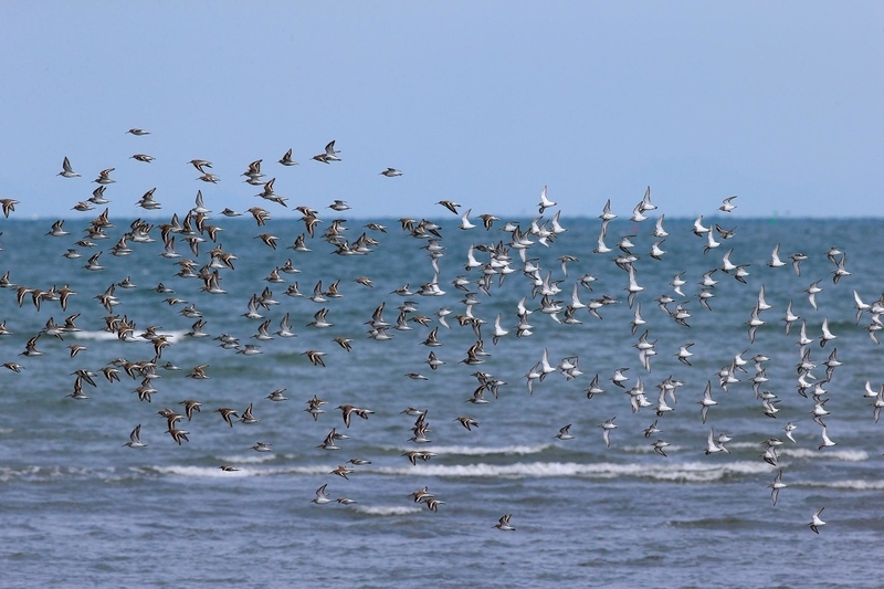 シギチが群れ飛ぶ様は壮観だ。
