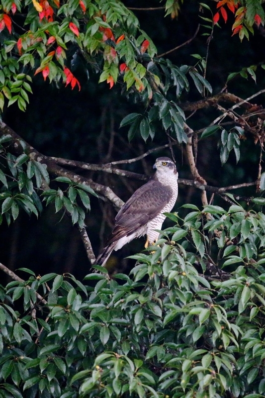 落ち鮎の時期になり、ヤマセミの動きが活発になる季節になって、わたしもヤマセミ基地に入れてもらうと、仲間から前の崖にオオタカが入るということを聞いた。